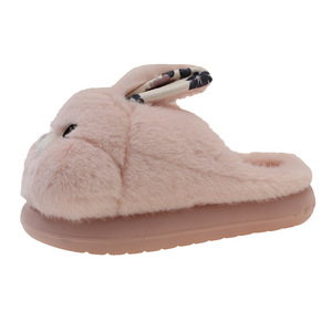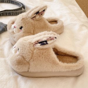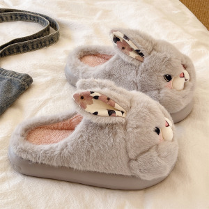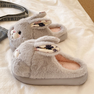 可爱卡通兔子毛毛拖鞋女冬季室内居家加绒保暖厚底防滑包头棉拖鞋