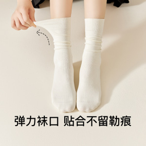 白色袜子女款中筒袜纯棉防臭月子袜春秋款长筒无骨堆堆袜春夏长袜