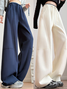 白色弯刀阔腿裤女秋季2025新款小个子休闲宽松直筒香蕉运动卫裤子