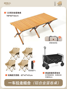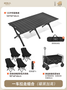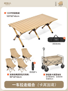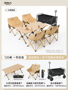 【一车拉走】经典款卡其*4+120木色蛋卷桌+静音款黑色营地车♢