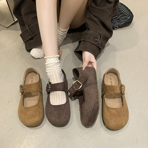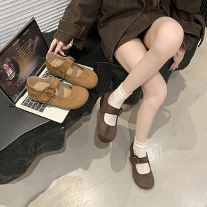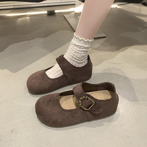 复古绒面玛丽珍鞋女2025春秋新款浅口勃肯单鞋配裙子平底豆豆鞋子