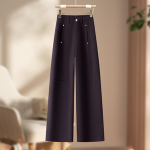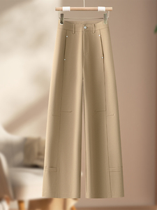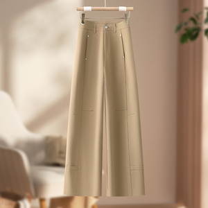 卡其色窄版阔腿西装裤女2025春秋季新款高腰宽松休闲爆款直筒裤子