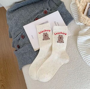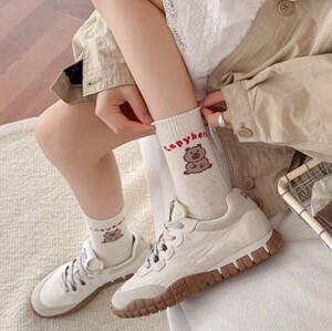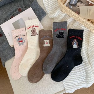 25秋冬新款袜子女点子纱学院风卡通动物中筒袜子诸暨袜子批发代发