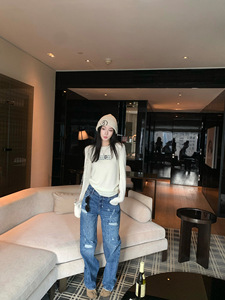 区区欧阳 【私服!MM*6纸片人】字母破洞圆领长袖针织衫