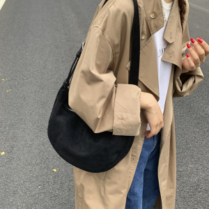 通勤腋下饺子包2025秋冬新款高级感小众睿营复古麂皮绒单肩斜挎包