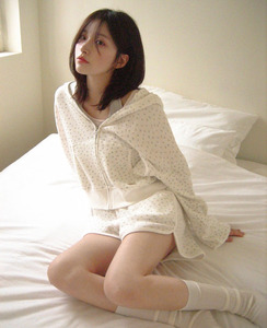 现货 2025秋季新款韩版娜琏同款碎花连帽短款卫衣外套/短裤套装女
