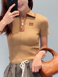 深圳南油高端女装2025秋季新款休闲百搭刺绣Polo领针织衫T恤上衣