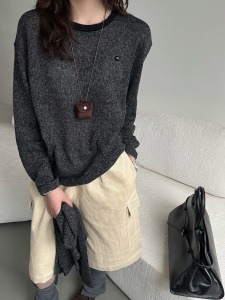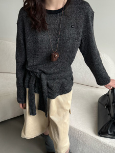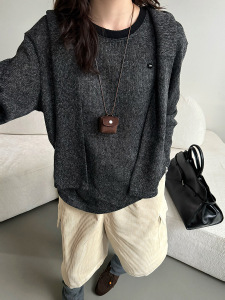 黎诺秋新款韩系极简风披肩针织长袖T恤女2025通勤简约两件套上衣