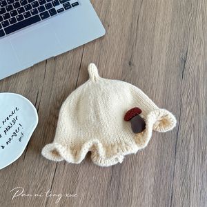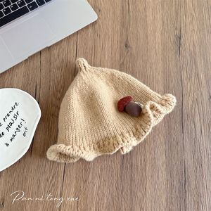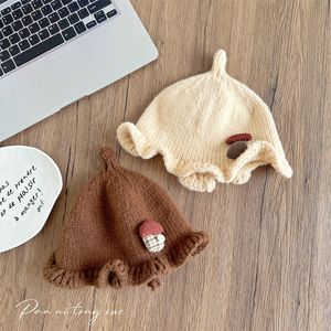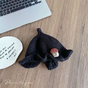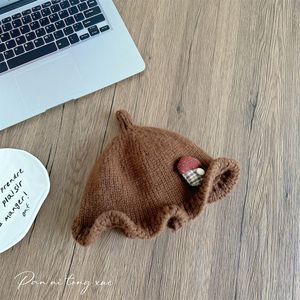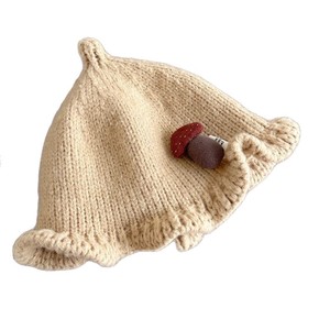 宝宝套头帽秋冬可爱蘑菇针织渔夫帽儿童毛线尖尖帽婴儿保暖帽子