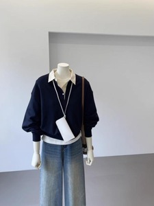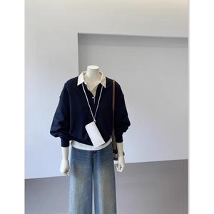 好穿显气质~秋季假两件新款高级感外套拼接女宽松学院风减龄上衣