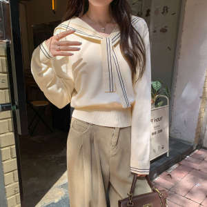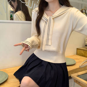 高级感海军领系带长袖针织衫女早秋2025新款巨好看学院风单穿上衣