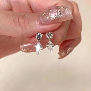 「清禾明月」法式菱形闪钻流苏耳钉简约小巧轻奢高级感冷淡风耳饰