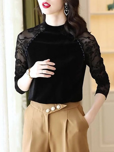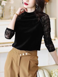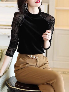 秋季新款丝绒半高领打底衫时尚百搭显瘦上衣小香风长袖t恤女A7267