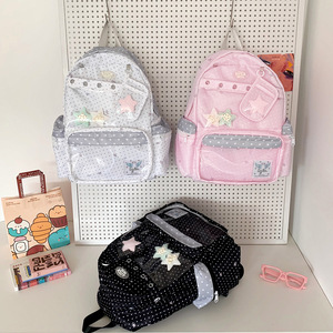 波点初中双肩包女生学生大容量二次元双肩透明吧唧痛包背包书包