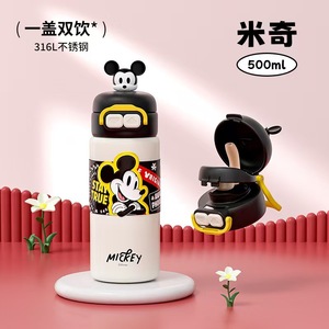 新款卡通学生保温杯高颜值316不锈钢双饮吸管直饮提绳便携水杯子