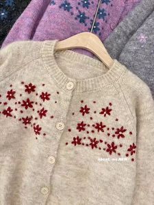 韩系穿搭早秋温柔碎花毛衣外套女秋冬外穿宽松慵懒针织开衫上衣