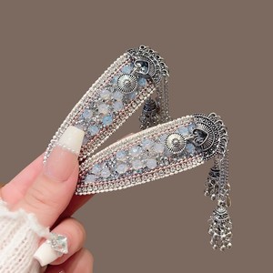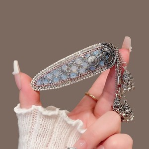 民族风蓝色水晶bb夹铃铛流苏发夹重工精致复古侧边刘海夹子发饰品