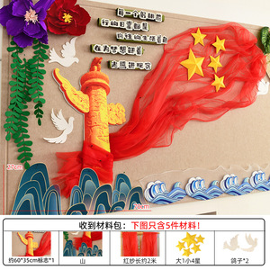 创意国风华表星星文化墙学校班级红色系黑板报组合墙面装饰材料