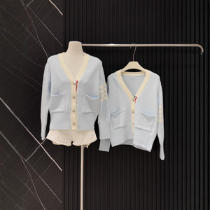 T25秋冬新款奶呼呼baby蓝软糯学院风V领针织开衫