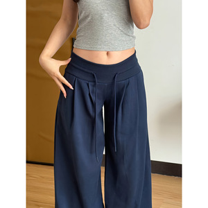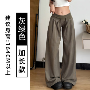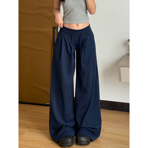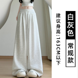 大码胖mm美式复古休闲卫裤女秋季慵懒风宽松阔腿裤垂感拖地运动裤