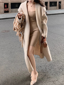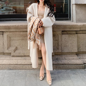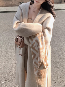 黑标韩女浴袍大衣-牦牛绒羊毛经典秀款连帽大衣外套小个子双面呢