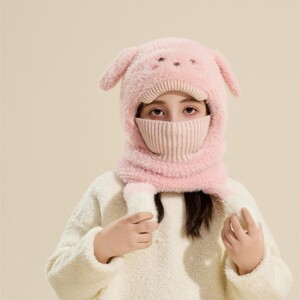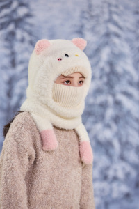 儿童帽子围巾一体秋冬季男女童宝宝毛线帽保暖护耳套头帽围脖