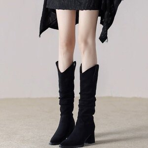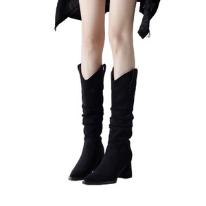 长靴显瘦靴子女2025秋季新款巨好看高跟靴子尖头长筒休闲堆堆靴姿