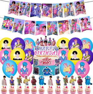 猎魔男团主题生日派对装饰kpop拉旗气球蛋糕插