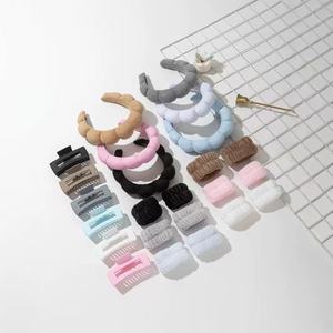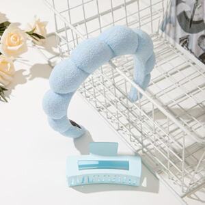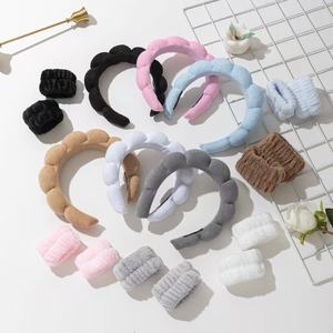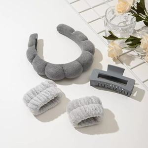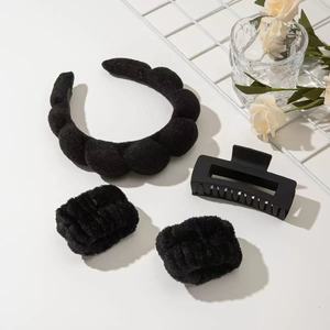 跨境海绵云朵麻花发箍组合发饰抓夹腕带套装高颅顶女洗脸化妆头箍