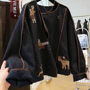 重工刺绣圆领短款外套女2025秋季新款宽松百搭夹克上衣黑色雪尼尔