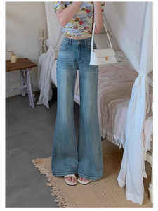 2025年新款浅色微喇牛仔裤女辣妹高腰宽松垂感显瘦不贴腿喇叭裤