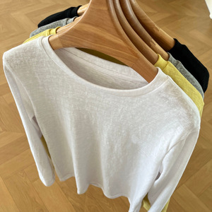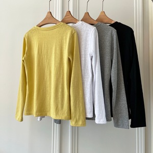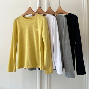 25秋季新款女简约刺绣经典款棉质平纹针织圆领长袖T恤上衣0918e6