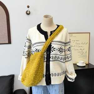 毛绒绒黄果树包包女式冬季潮时尚流行单肩包大容量通勤斜挎水桶包