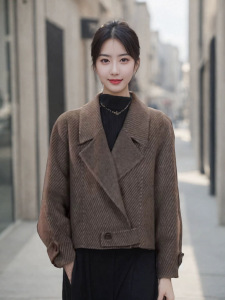 福利短款设计款双面呢大衣羊毛宽松休闲风2025秋冬女装外套X上衣