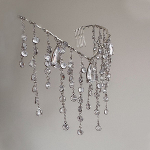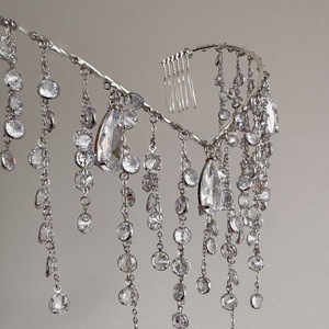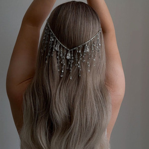 跨境新款V型流苏发箍女优雅新娘婚礼后脑勺盘发水钻头饰轻奢时尚