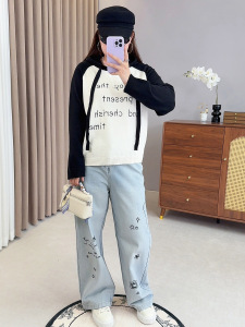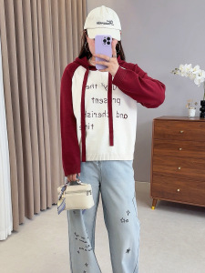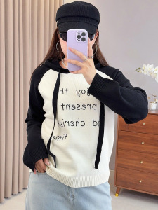爱元2025秋季新款大码女装针织衫胖妹妹时尚撞色字母连帽毛衣F526