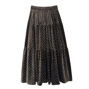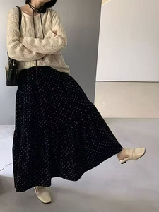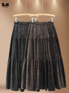 波点丝绒半身裙2025秋冬新款韩系甜美高腰蛋糕裙百搭中长款半裙