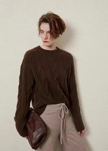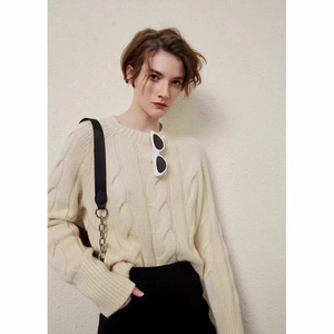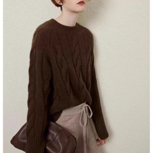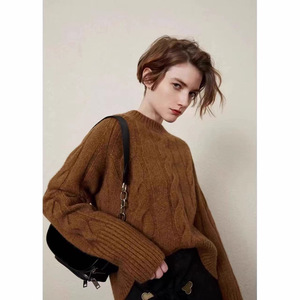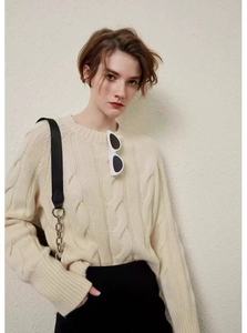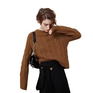 韩版复古大麻花女士羊绒圆领简约纯色套头衫外穿宽松休闲针织毛衣