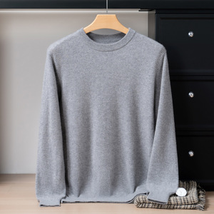 100%纯山羊绒衫男士圆领纯色套头毛衣商务休闲内搭针织打底衫上衣