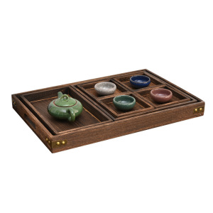 围炉煮茶木质托盘中式茶盘桌面干果零食分格盘下午茶点心桐木托盘