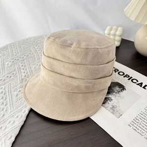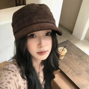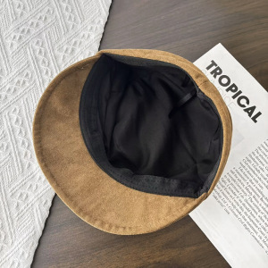 时尚纯色马术帽麂皮绒平顶鸭舌帽女休闲百搭日系春秋八角帽显脸小