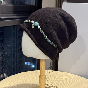 波西米亚民族风针织包头帽女川西旅游穿搭堆堆帽显脸小套头冷帽子