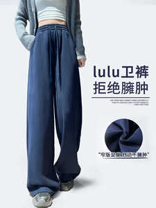 藏青色运动裤女小个子宽松直筒休闲卫裤2025新款春秋高腰阔腿裤子