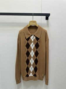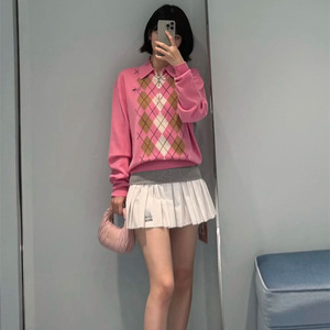 25秋季新款南油高定Miu休闲百搭甜味粉撞色菱形半拉链polo领毛衣