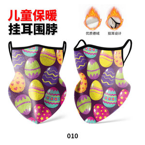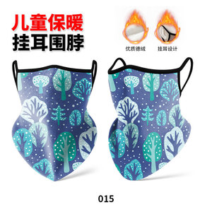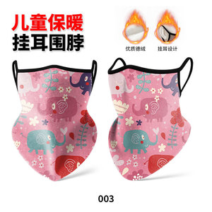 跨境儿童滑雪面罩户外挂耳保暖脖套加厚卡通插画数码印骑行三角巾