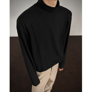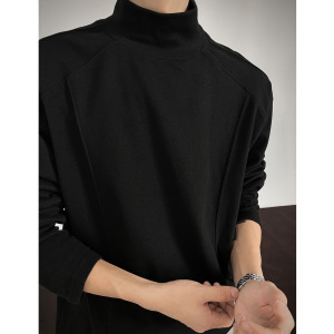 秋冬装新款男士双面绒感小高领保暖打底衫解构内搭长袖男时尚T恤