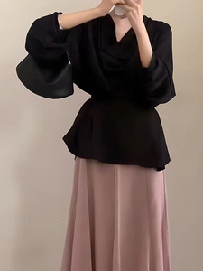春秋穿搭一整套气质黑色2025款衬衫上衣女半身裙韩系chic两件套装