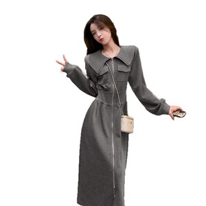 灰色卫衣连衣裙女春秋新款2025爆款时尚洋气减龄气质翻领休闲裙子