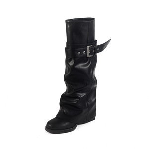 zijin家~可拆卸裤管靴~堆堆变直筒靴~皮带扣高筒骑士靴25秋冬新款