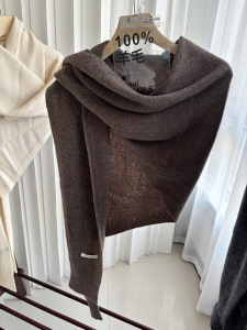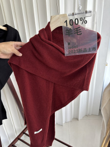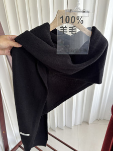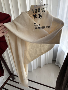 精选100%澳洲羊毛纯色慵懒披肩女时秋冬时髦叠穿护颈保暖围巾外搭